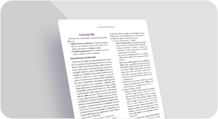 Recommendations and Reports Community NPIs of a pandemic, before many students and staff members become NPIs that can be implemented by communities include the ill. Preemptive, coordinated dismissals can be implemented by following: the following facilities for the following reasons: • School closures and dismissals: These include temporary • Child care facilities and K–12 schools closures and dismissals of child care facilities, K–12 – Children have higher influenza attack rates than adults (62) schools, and institutions of higher education. and are infectious for a longer period than adults (63,64). • Social distancing measures: These include measures for – Influenza transmission is common in schools and schools, workplaces, and mass gatherings. contributes to school absenteeism and parental absenteeism from work (65,66). School Closures and Dismissals – The presence of school-aged children in a household is In the event of a pandemic, state and local public health authorities a risk factor for influenza virus infection in families play an important role in protecting the school community and (62,65,67). should establish and maintain partnerships with district and school – Social contact and mixing patterns among school-aged leaders, school emergency operations planning teams, and local children differ substantially depending on the grade municipality leaders (e.g., mayors). Public health authorities are a and school level, during various periods of the school credible source of information, have multiple (often free) resources day, between weekdays and weekends, and between available for information awareness campaigns, and provide regular school terms and holiday breaks (68–71). guidance for increasing school response measures. Depending on Physical floor plans and intergrade activities (e.g., the severity of the pandemic, these measures might range from cafeteria size and lunch breaks) also can affect in-school everyday preventive actions to preemptive, coordinated school social mixing (68). closures and dismissals. A school closure means closing a school and – Schoolchildren can introduce the influenza virus into sending all the students and staff members home, whereas during a community, leading to increased rates of illness among a school dismissal, a school might stay open for staff members their household or community contacts (72–74). while the children stay home. Preemptive school dismissals can • Institutions of higher education be used to disrupt transmission of influenza before many students – Influenza outbreaks on college and university campuses and staff members become ill. Coordinated dismissals refer to the typically have high attack rates (44%–73%) (75–78) simultaneous or sequential closing of schools in a jurisdiction. Thus, and cause substantial morbidity (79,80). For example, preemptive, coordinated school closures and dismissals can be used during the 2009 H1N1 pandemic, influenza spread early during an influenza pandemic to prevent virus transmission rapidly through a university campus within 2 weeks in schools and surrounding communities by reducing close contact (81); on another residential campus, one infected among the following groups (supplementary Chapter 3 https:// freshman initiated an outbreak that resulted in 226 stacks.cdc.gov/view/cdc/44313): laboratory-confirmed cases. Freshmen were the main • Children in child care centers and preschools facilitators of the spread of the H1N1pdm09 virus • School-aged children and teens in K–12 schools because of their higher number and frequency of social • Young adults in institutions of higher education contacts (82). During a dismissal, the school facilities are kept open, which – Influenza is more prevalent among residential students allows teachers to develop and deliver lessons and materials, thus at boarding schools and colleges than among maintaining continuity of teaching and learning, and allows nonresidential students (78,83). other staff members to continue to provide services and help with – ILIs are common among college and university students additional response efforts. School closures and dismissals might and are associated with increased health care use, be coupled with social distancing measures (e.g., cancelling decreased health status, and impaired school sporting events and other mass gatherings) to reduce out-of- performance (84). school social contact among children when schools are closed. Implementation of preemptive, coordinated school Rationale for use as a public health strategy. Preventing the closures and dismissals during an evolving influenza spread of disease in educational settings among children and pandemic might have one or more of the following three young adults reduces the risk for infection for these age groups public health objectives***: and slows virus transmission in the community. Components *** Additional information on the use of preemptive, coordinated school closures of the strategy might include preemptive, coordinated school and dismissals of different durations is available (supplementary Chapter 3 closures and dismissals implemented during the earliest stages https://stacks.cdc.gov/view/cdc/44313). 16 MMWR / April 21, 2017 / Vol. 66 / No. 1 US Department of Health and Human Services/Centers for Disease Control and Prevention