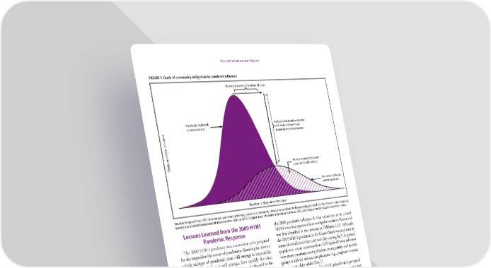 Recommendations and Reports FIGURE 1. Goals of community mitigation for pandemic influenza Slow acceleration of number of cases Pandemic outbreak: Reduce peak number of cases no intervention and related demands on hospitals and infrastructure Daily number of cases Reduce number of overall cases and health effects Pandemic outbreak: with intervention Number of days since first case Source: Adapted from: CDC. Interim pre-pandemic planning guidance: community strategy for pandemic influenza mitigation in the United States—early, targeted, layered use of nonpharmaceutical interventions. Atlanta, GA: US Department of Health and Human Services, CDC; 2007. https://stacks.cdc.gov/view/cdc/11425. Lessons Learned from the 2009 H1N1 the 2009 pandemic influenza A virus turned out to be a novel Pandemic Response H1N1 virus that appears to have emerged in southern Mexico and was first identified in two persons in California (13). Although The 2009 H1N1 pandemic was a reminder to be prepared the 2009 H1N1 pandemic in the United States was moderate in for the unpredictable nature of pandemics. Knowing in advance terms of overall morbidity and mortality among the U.S. general which subtype of pandemic virus will emerge is impossible, population, severe outcomes from H1N1pdm09 virus infection as is where and when it will emerge, how quickly the virus were more common among children, young adults, and specific will spread, how severe the illness will be, and who will be the groups at risk for serious complications (e.g., pregnant women) most affected. Because of this unpredictability, prepandemic than among older adults (Box 1). planning must be broad and flexible. Although the emergence of the H1N1pdm09 virus prompted The 2007 strategy for prepandemic planning was developed development of pandemic vaccines, a pandemic vaccine was with the assumption that the next influenza pandemic would not available until October 2009, 6 months after the initial be severe, like the 1957 pandemic, which was characterized by report that identified the pandemic virus. In addition, another high transmissibility and medium clinical severity. When the 2 months were required (December 2009) for sufficient stocks 2007 strategy was developed, the primary concern was that a to be manufactured, distributed, and available to vaccinate pandemic virus might evolve from the highly pathogenic avian several population groups, including school-aged children and influenza A (H5N1) virus, a virus that reemerged in Asia in persons living with or caring for infants aged <6 months, as 2003 in domestic poultry and spread to Africa, the Middle East, recommended by the Advisory Committee on Immunization and Europe among poultry, with sporadic zoonotic transmission † Practices (ACIP). Even though work is ongoing to accelerate (37). Moreover, CDC thought that this virus would most likely † emerge overseas, providing the United States with time to prepare In July 2009, ACIP recommended vaccination of several population groups, for a domestic response, including making use of prepandemic including children aged 6 months through 18 years because cases of H1N1 influenza H5N1 vaccine in CDC’s Strategic National Stockpile. Instead, had occurred in children who were in close contact with each other in school and child care settings (https://www.cdc.gov/h1n1flu/vaccination/acip.htm). US Department of Health and Human Services/Centers for Disease Control and Prevention MMWR / April 21, 2017 / Vol. 66 / No. 1 3