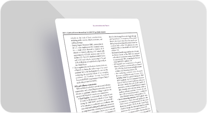 Recommendations and Reports BOX 1. (Continued) Lessons learned from the 2009 H1N1 pandemic response schools on the basis of local considerations, dates for schools ranged from early August through including public concern, school absenteeism, and early September (17). A comparison of Texas school staffing shortages. districts that closed versus those that stayed open – During August–December 2009, communities in during the pandemic found that school closure was 46 U.S. states implemented 812 dismissal events associated with a 45%–72% reduction in acute (i.e., a single school dismissal or dismissal of all respiratory illness in households with school-aged schools in a district), affecting 1,947 schools with children (18). approximately 623,616 students and 40,521 – Mathematical models suggested that school closures teachers (15). The 1,947 schools included 639 urban in Alberta, Canada, in May 2009 were associated and 1,250 rural schools, representing 0.7% and with reduced transmission among school children 3.3% of all urban and rural schools, respectively, in by approximately 50%, attenuating the first wave the United States. of the 2009 H1N1 epidemic (19). • The recognition that the Pandemic Severity Index was – H1N1pdm09 virus transmission in the greater of limited use during the earliest stages of an actual Mexico City, Mexico, area decreased by an estimated pandemic led to the development of a new tool for 29%–37% after school closures and implementation evaluating the potential effects of an emerging of other social distancing measures (20). pandemic, the Pandemic Severity Assessment – After conducting a systematic review of scientific Framework (PSAF) (supplementary Chapter 2 https:// literature published through February 2011, stacks.cdc.gov/view/cdc/44313). including initial data gathered during the 2009 NPIs and influenza transmission H1N1 pandemic, the U.S. Community Preventive Well-established methods to prevent seasonal influenza Services Task Force found insufficient evidence to transmission, such as hand hygiene promotion, also were determine whether the public health benefits of effective in pandemic influenza settings to prevent the preemptive, coordinated school dismissals balanced spread of H1N1pdm09 virus in some communities. their economic and social costs during a mild or • Hand hygiene. A randomized trial, conducted over moderate influenza pandemic. However, the task 12 weeks in 60 elementary schools in Cairo, Egypt, force did recommend preemptive, coordinated during the 2009 H1N1 pandemic, demonstrated a school dismissals during a severe pandemic (21). 47% reduction in confirmed cases of influenza after • Social distancing measures. H1N1pdm09 virus twice-daily hand washing and health hygiene instruction transmission in Mexico decreased significantly after in comparison with a control group that did not receive school closures and implementation of other social health hygiene instruction or have access to soap and distancing measures (20,22). In the United States, hand-drying materials (16). This study demonstrated schools in Georgia that shortened school days had less the effects of hand washing on laboratory-confirmed absenteeism due to severe respiratory illness (23). influenza in a population of persons that typically have Additional assessments are needed to determine the value little or no access to soap or hand-drying materials and of combining voluntary home quarantine with antiviral among whom frequent hand washing is not standard. chemoprophylaxis. • School closures and dismissals. Data from the United • Although the 2007 strategy suggested that communities States, Canada, and Mexico suggest that early consider combining voluntary home quarantine with implementation of school closures and dismissals prophylactic use of antiviral medications, assuming a reduced the spread of H1N1pdm09 virus. feasible means of distribution, HHS did not adopt – Two waves of the 2009 H1N1 pandemic occurred antiviral chemoprophylaxis as its official policy because of in the United States, one in spring 2009 and one in concerns about insufficient supplies and drug resistance. fall 2009. The majority of pandemic cases occurred • During the 2009 H1N1 pandemic, antiviral during the fall wave (4), as H1N1pdm09 cases chemoprophylaxis of exposed persons contained the surged in many U.S. communities about 2 weeks spread of the disease, along with the implementation after schools reopened after summer break. Opening of social distancing measures, in a few small, well- defined settings, including a summer camp (24) and a US Department of Health and Human Services/Centers for Disease Control and Prevention MMWR / April 21, 2017 / Vol. 66 / No. 1 5