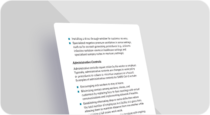 ■ Installing a drive-through window for customer service. ■ Specialized negative pressure ventilation in some settings, such as for aerosol generating procedures (e.g., airborne infection isolation rooms in healthcare settings and specialized autopsy suites in mortuary settings). Administrative Controls Administrative controls require action by the worker or employer. Typically, administrative controls are changes in work policy or procedures to reduce or minimize exposure to a hazard. Examples of administrative controls for SARS-CoV-2 include: ■ Encouraging sick workers to stay at home. ■ Minimizing contact among workers, clients, and customers by replacing face-to-face meetings with virtual communications and implementing telework if feasible. ■ Establishing alternating days or extra shifts that reduce the total number of employees in a facility at a given time, allowing them to maintain distance from one another while maintaining a full onsite work week. ■ Discontinuing nonessential travel to locations with ongoing COVID-19 outbreaks. Regularly check CDC travel warning levels at: www.cdc.gov/coronavirus/2019-ncov/travelers. ■ Developing emergency communications plans, including a forum for answering workers’ concerns and internet-based communications, if feasible. ■ Providing workers with up-to-date education and training on COVID-19 risk factors and protective behaviors (e.g., cough etiquette and care of PPE). ■ Training workers who need to use protecting clothing and equipment how to put it on, use/wear it, and take it off correctly, including in the context of their current and potential duties. Training material should be easy to understand and available in the appropriate language and literacy level for all workers. GUIDANCE ON PREPARING WORKPLACES FOR COVID-19 13