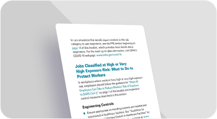 In rare situations that would require workers in this risk category to use respirators, see the PPE section beginning on page 14 of this booklet, which provides more details about respirators. For the most up-to-date information, visit OSHA’s COVID-19 webpage: www.osha.gov/covid-19. Jobs Classified at High or Very High Exposure Risk: What to Do to Protect Workers In workplaces where workers have high or very high exposure risk, employers should follow the guidance for “Steps All Employers Can Take to Reduce Workers’ Risk of Exposure to SARS-CoV-2,” on page 7 of this booklet and implement control measures described in this section. Engineering Controls ■ Ensure appropriate air-handling systems are installed and maintained in healthcare facilities. See “Guidelines for Environmental Infection Control in Healthcare Facilities” for more recommendations on air handling systems at: www. cdc.gov/mmwr/preview/mmwrhtml/rr5210a1.htm. ■ CDC recommends that patients with known or suspected COVID-19 (i.e., person under investigation) should be placed in an airborne infection isolation room (AIIR), if available. ■ Use isolation rooms when available for performing aerosol-generating procedures on patients with known or suspected COVID-19. For postmortem activities, use autopsy suites or other similar isolation facilities when performing aerosol-generating procedures on the bodies of people who are known to have, or suspected of having, COVID-19 at the time of their death. See the CDC postmortem guidance at: www.cdc.gov/coronavirus/2019- ncov/hcp/guidance-postmortem-specimens.html. OSHA also provides guidance for postmortem activities on its COVID-19 webpage: www.osha.gov/covid-19. GUIDANCE ON PREPARING WORKPLACES FOR COVID-19 23